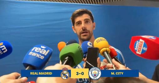 本赛季欧冠1/8决赛首回合,皇马主场3-0战胜曼城,库尔图瓦赛后在混合区接受了采访。